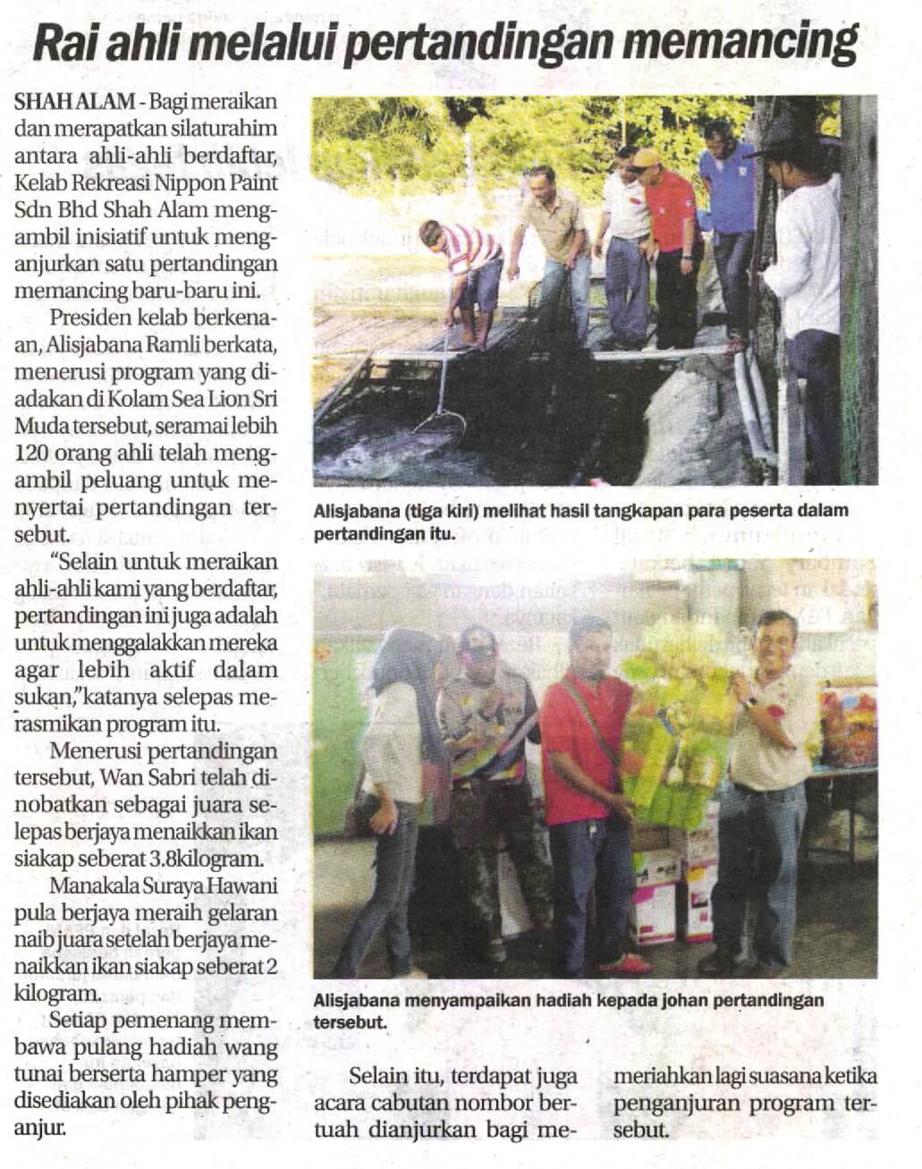 20 May, 2018 Sinar Harian Rai ahli melalui pertandingan memancing