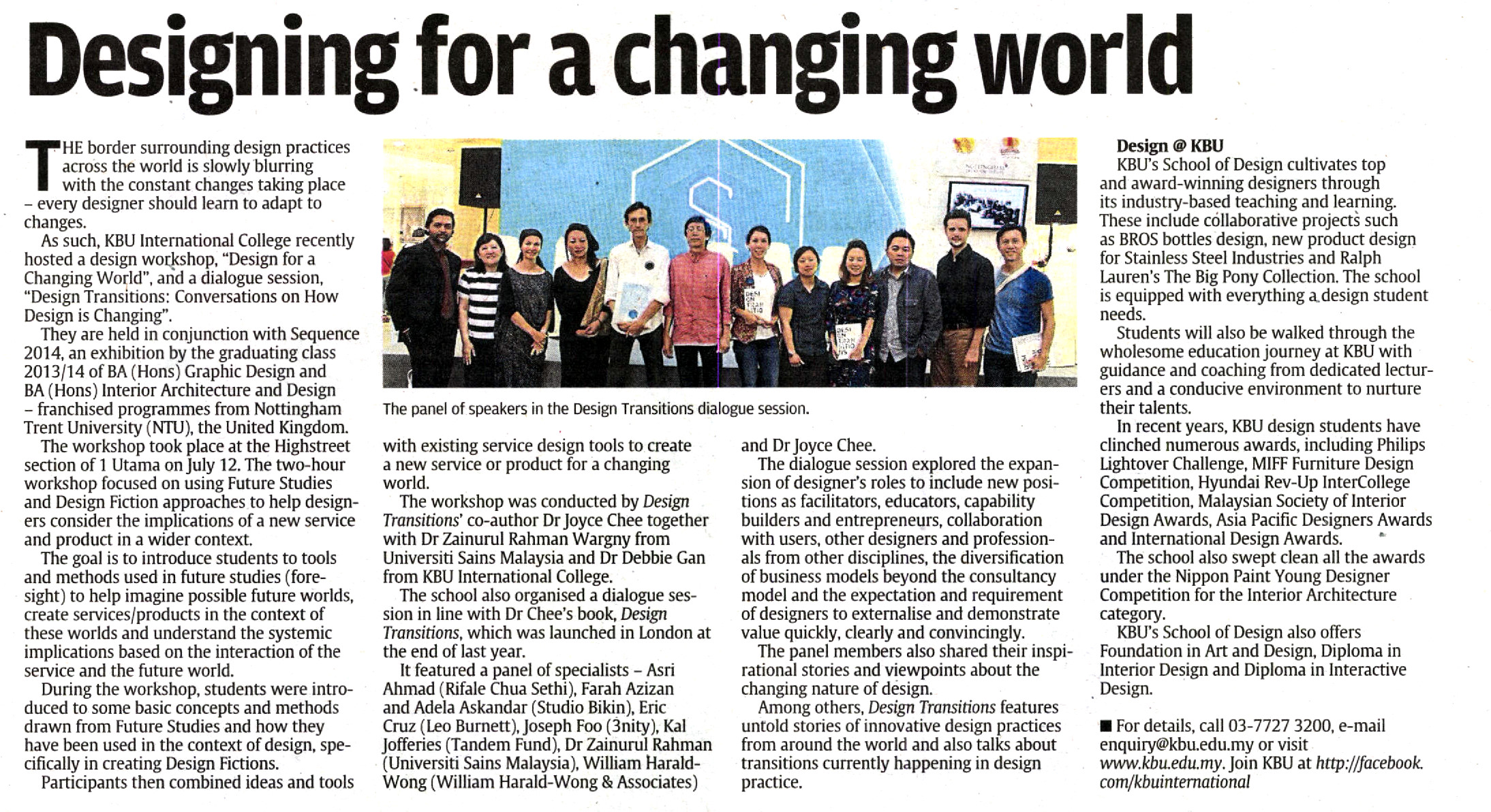 | 14 Aug, 2014 | The Star | Designing for a changing world |