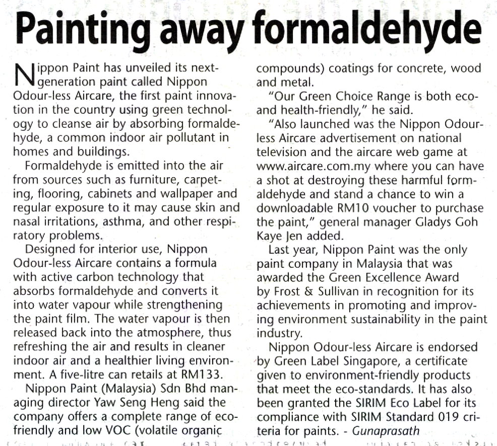 28 May, 2010 New Straits Times Painting Away Formaldehyde