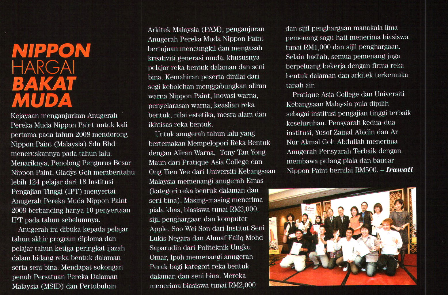 | 01 Feb, 2010 | The Malaysian Women's Weekly | Create An Impression For Your Small Spaces with Nippon Paint |